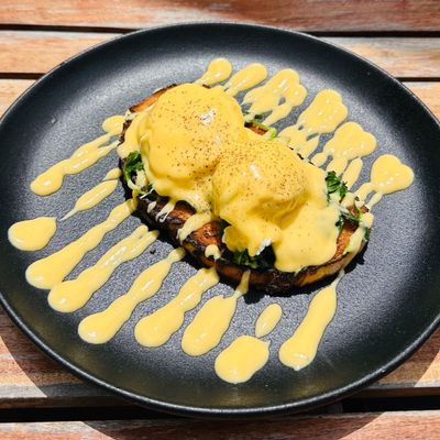 Toasted sourdough, fresh spinach, 2 poached eggs, house-made hollandaise sauce