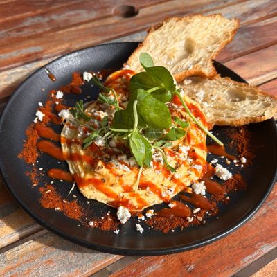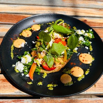 sauteed mushroom, kale, heirloom tomato, onion and capsicum, feta cheese, mojo verde, smoky aioli and mixed fresh herbs on toasted sourdough