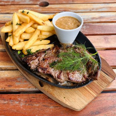 200g rump steak served with chips and gravy