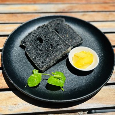 2pcs. toasted chia and quinoa activated charcoal bread with butter